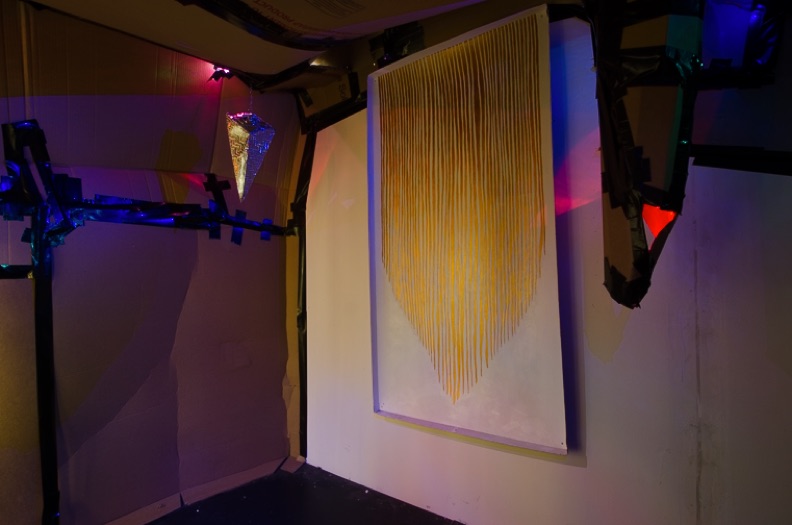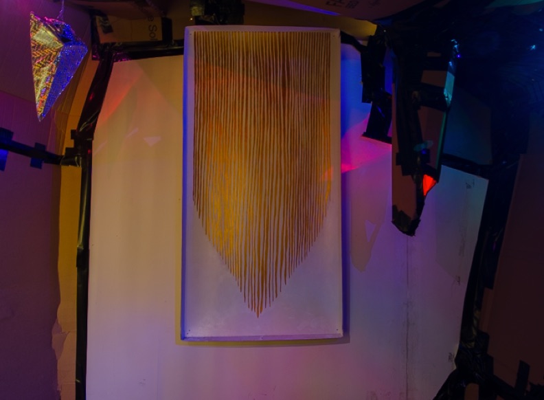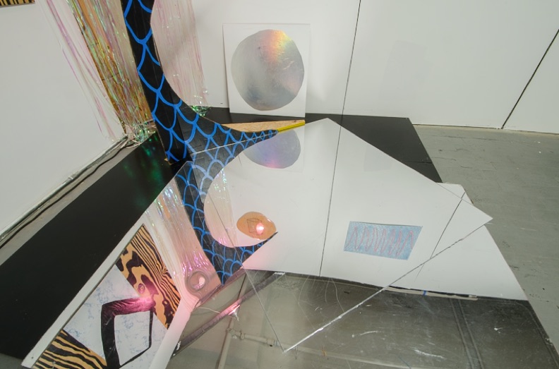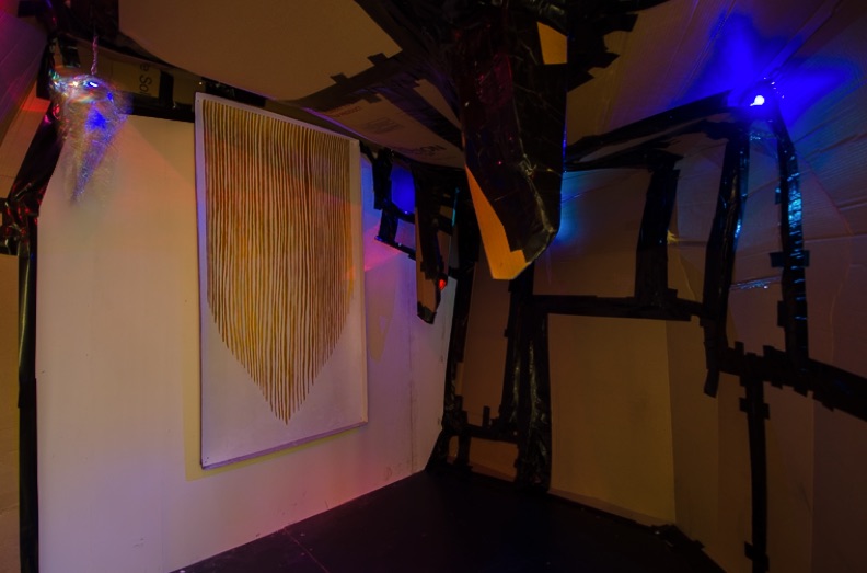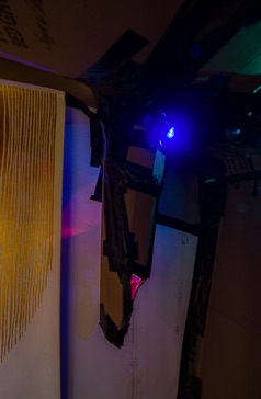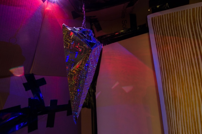 materials: cardboard, duct tape, acrylic, mylar, transparency film, permanent marker, clear plastic, wire, LED lights, birch plywood, cinder blocks
