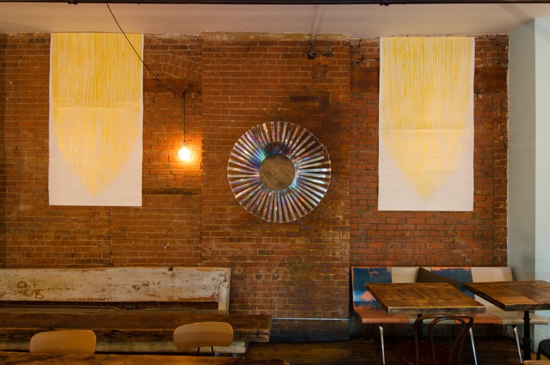 Pour Out, 2015. materials: cardboard, acrylic, mylar, transparency film, permanent marker, clear plastic, wire and silver bling.